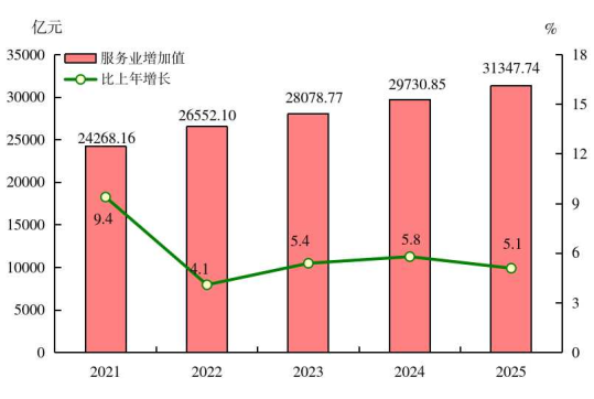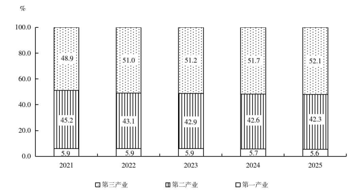 图2 2021-2025年三次产业增加值占地区生产总值比重