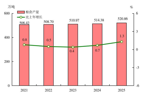 图4 2021-2025年粮食产量及其增长速度