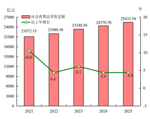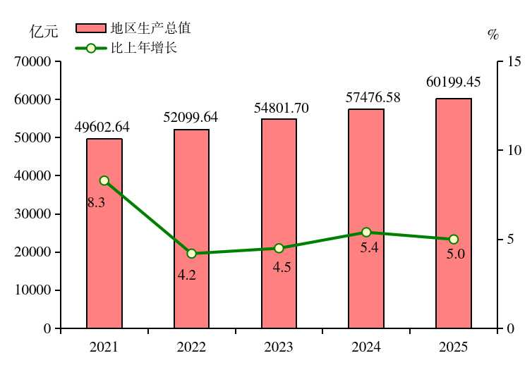 图1 2021-2025年地区生产总值及其增长速度