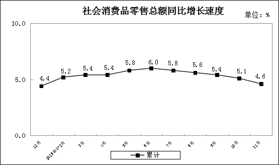 1-11月,全省社会消费品零售总额23188.73亿元,比上年同期增长4.6%(名义增长,下同)。