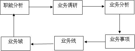 2.业务调研。按照现行的组织机构,根据组织机构各部门的职能描述,将各部门的职能初步细化为较小的业务分类,由业务人员对业务分类进行确认、描述、修改和完善,并对业务分类中包括的业务处理过程和步骤进行描述。