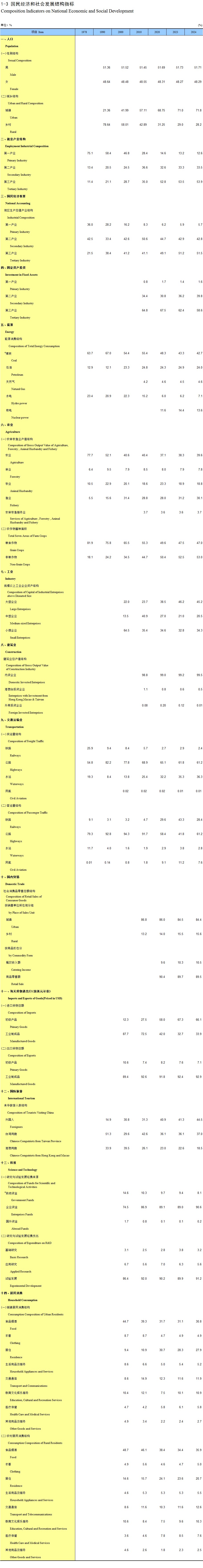 1-3 国民经济和社会发展结构指标