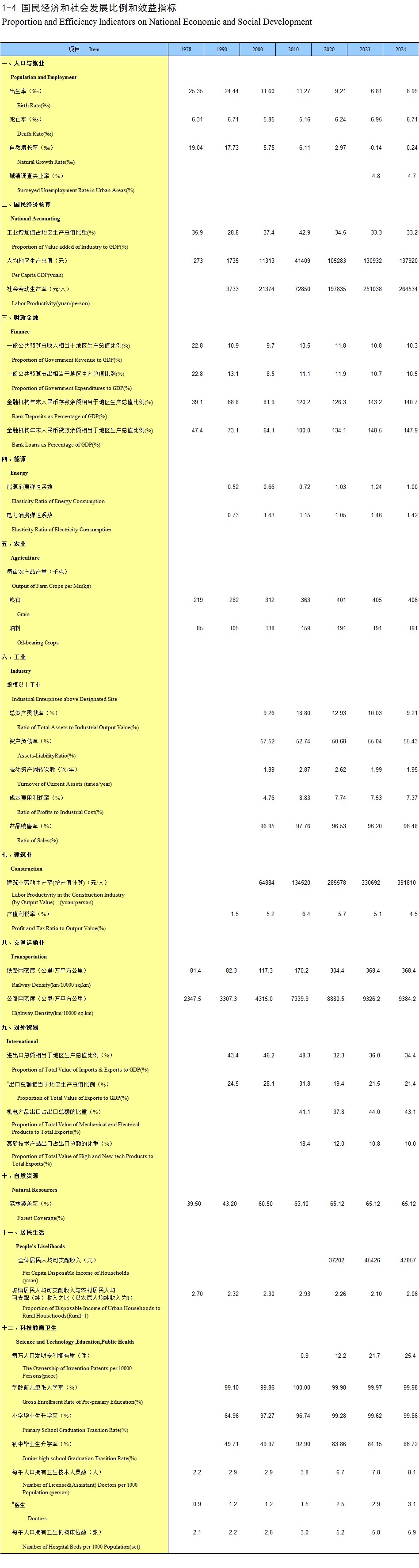 1-4 国民经济和社会发展比例和效益指标