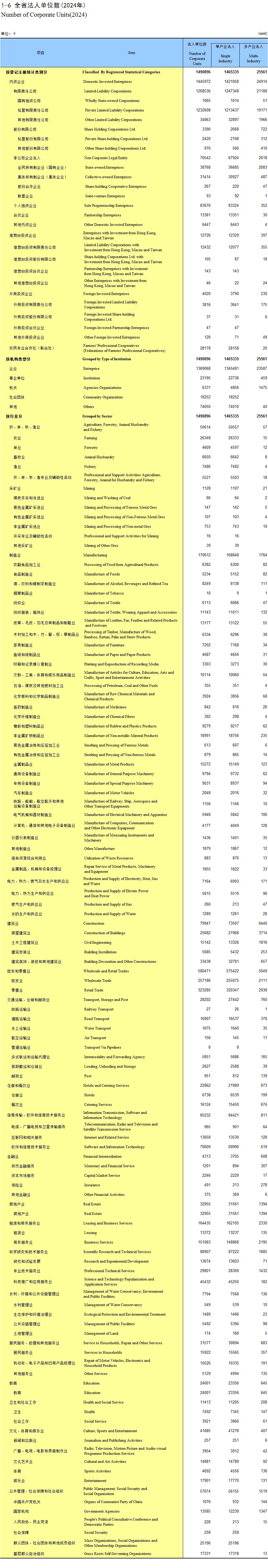 1-6 全省法人单位数(2024年)