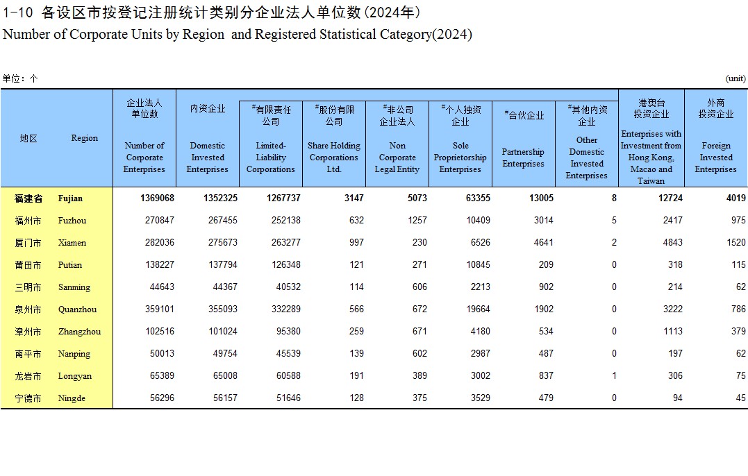 1-10 各设区市按登记注册统计类别分企业法人单位数(2024年)