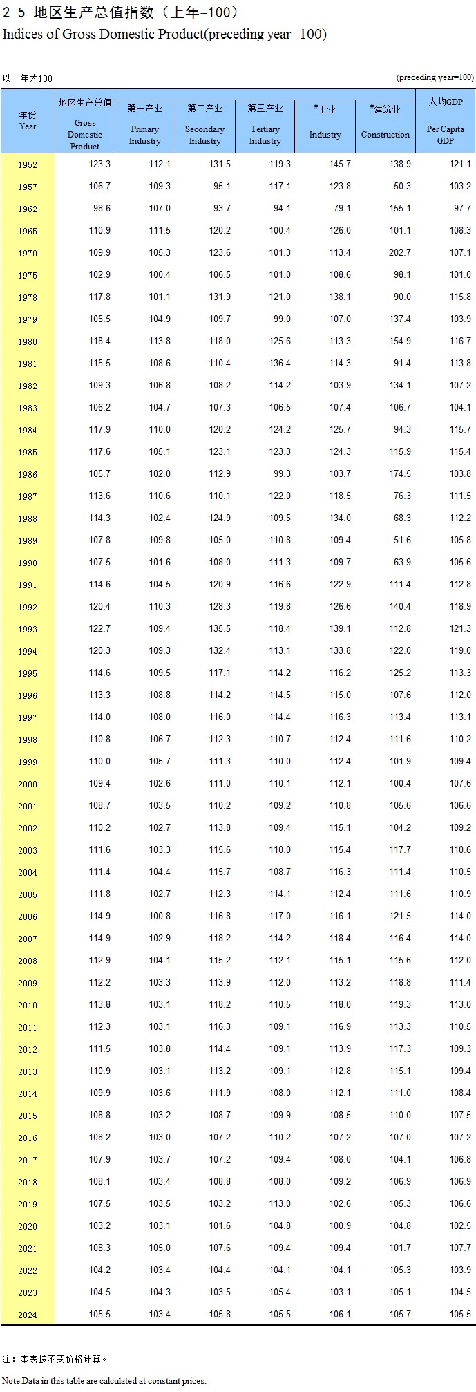 2-5 地区生产总值指数(上年=100)