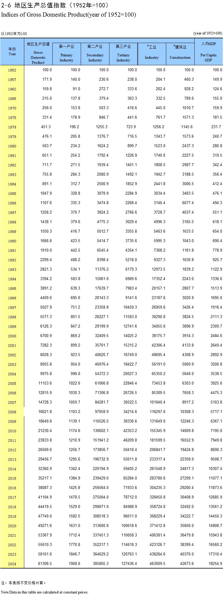 2-6 地区生产总值指数(1952年=100)