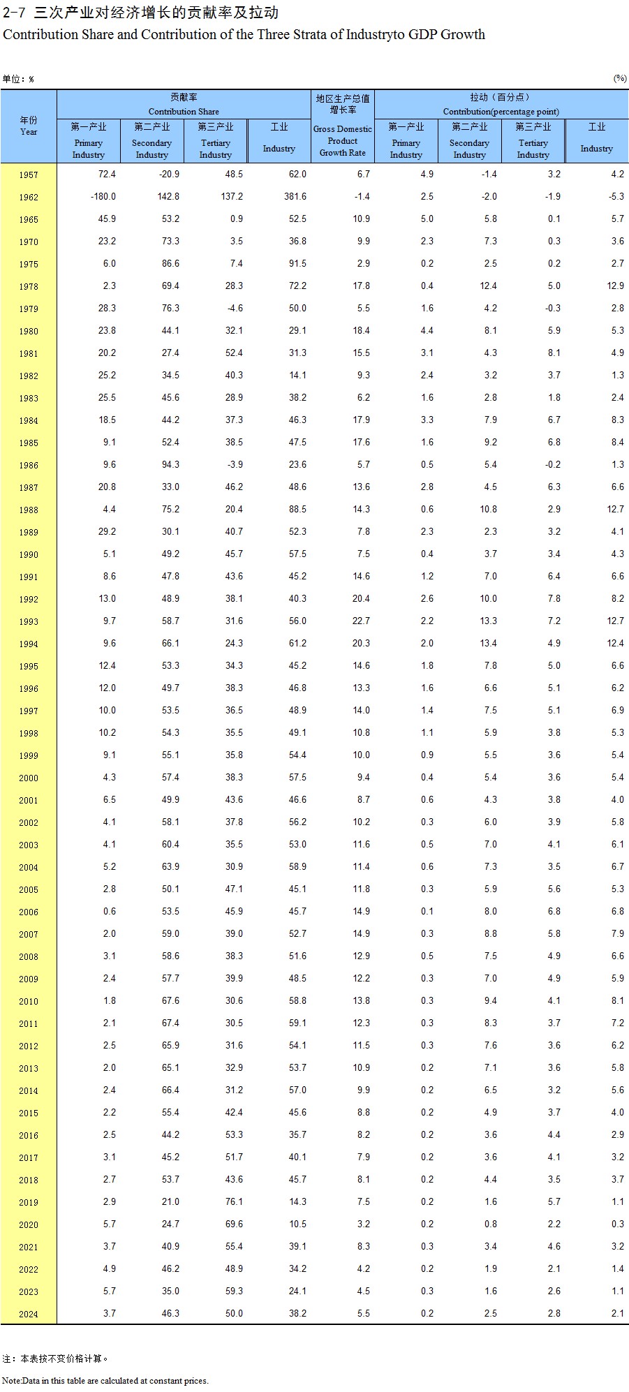 2-7 三次产业对经济增长的贡献率及拉动