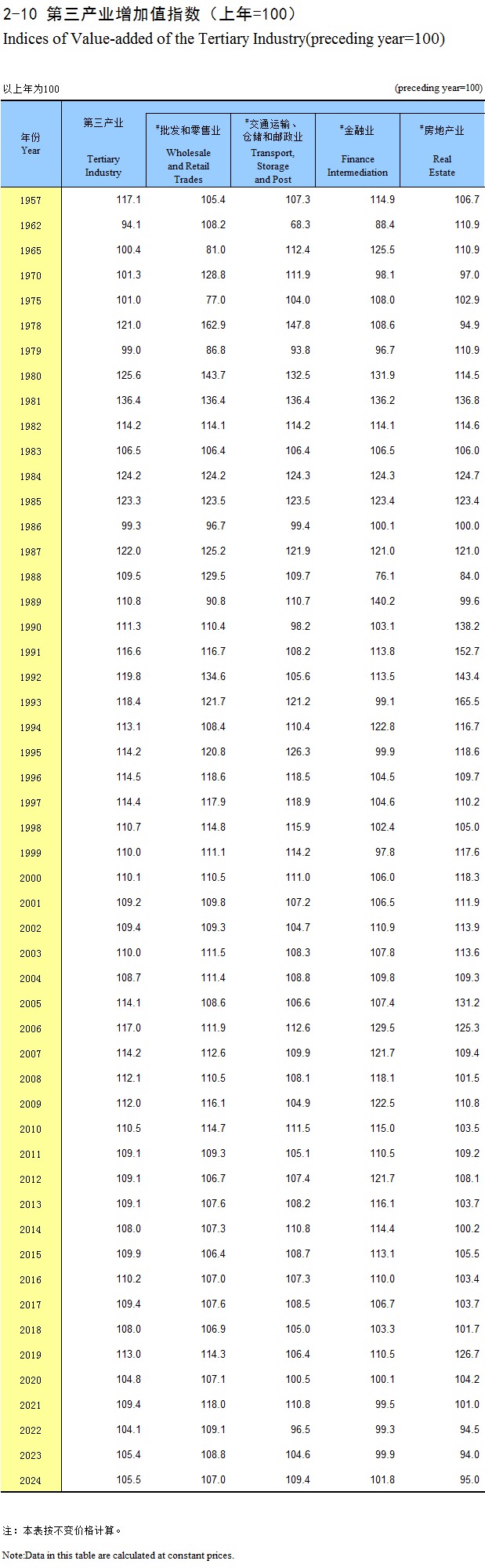 2-10 第三产业增加值指数(上年=100)