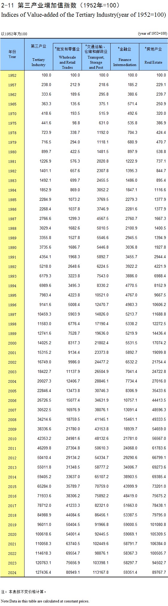 2-11 第三产业增加值指数(1952年=100)