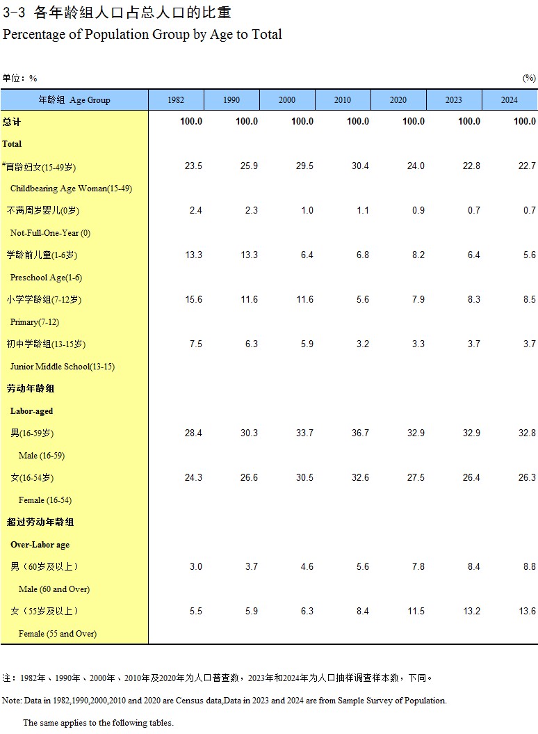 3-3 各年龄组人口占总人口的比重
