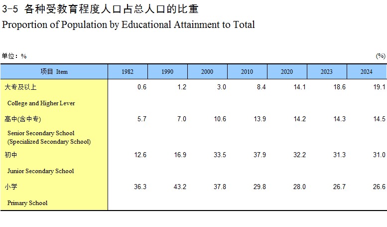 3-5 各种受教育程度人口占总人口的比重