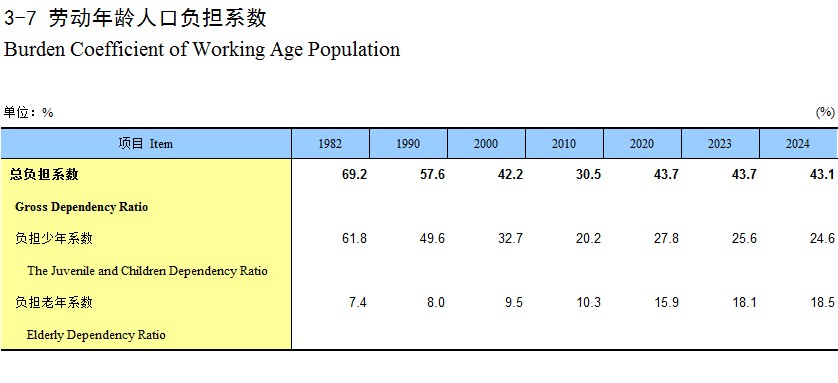 3-7 劳动年龄人口负担系数