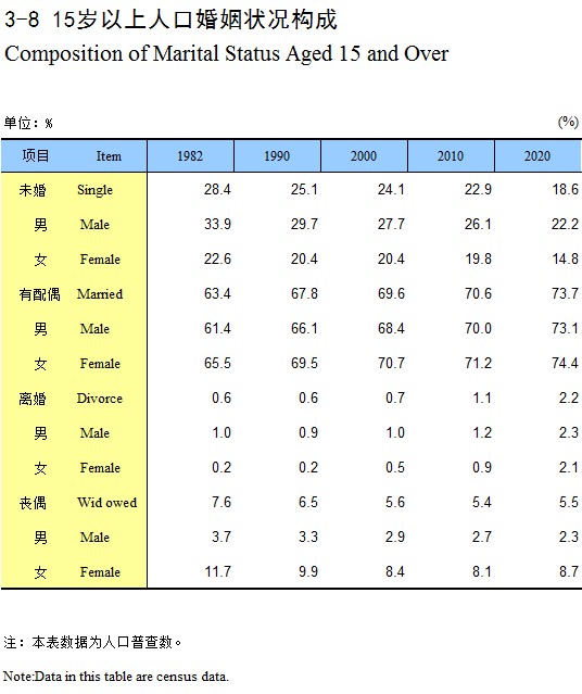 3-8 15岁以上人口婚姻状况构成