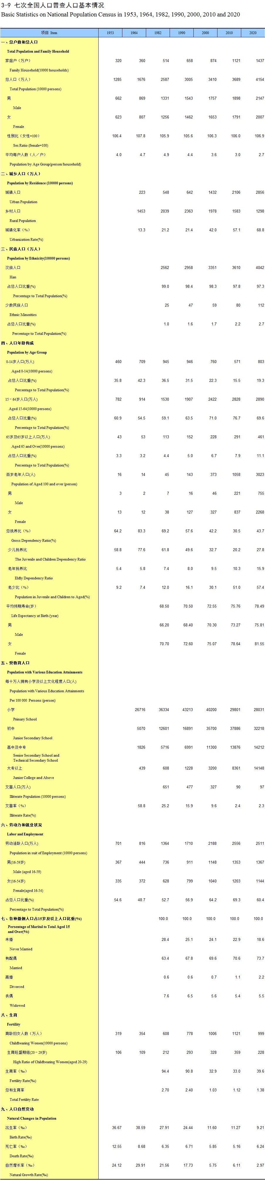 3-9 七次全国人口普查人口基本情况