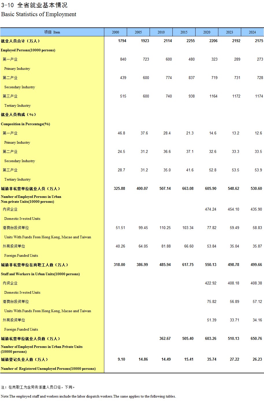 3-10 全省就业基本情况
