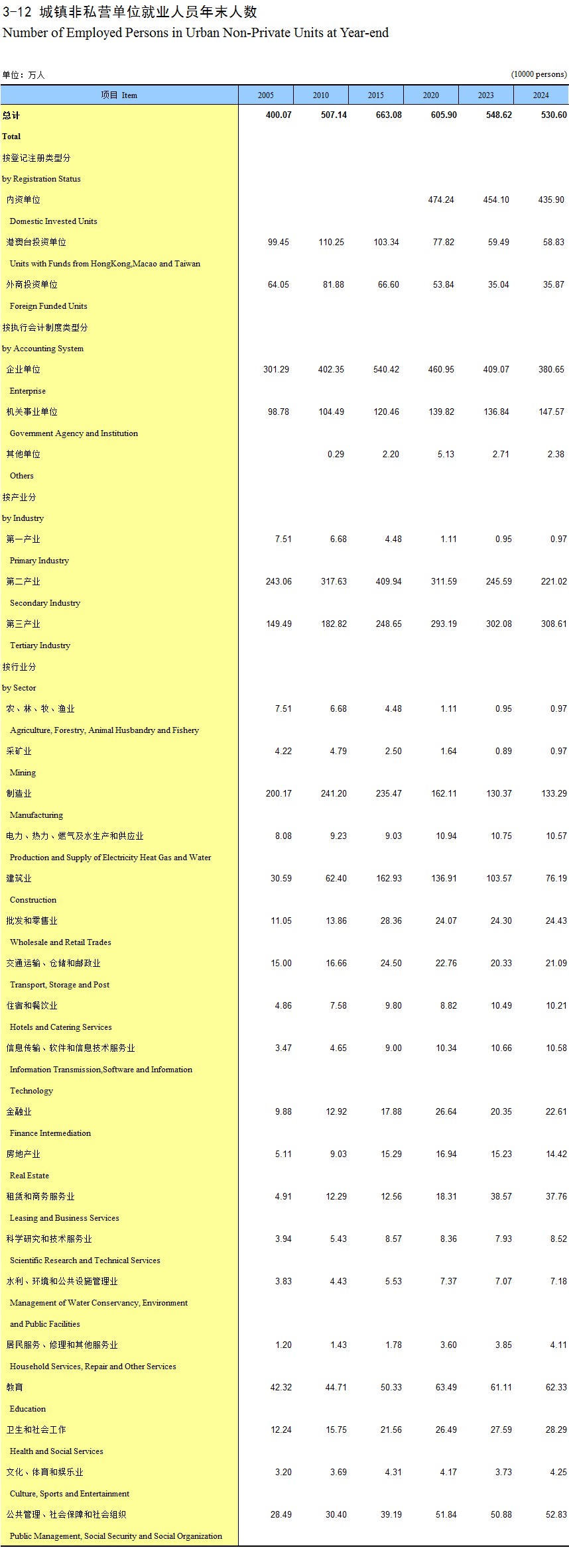 3-12 城镇非私营单位就业人员年末人数