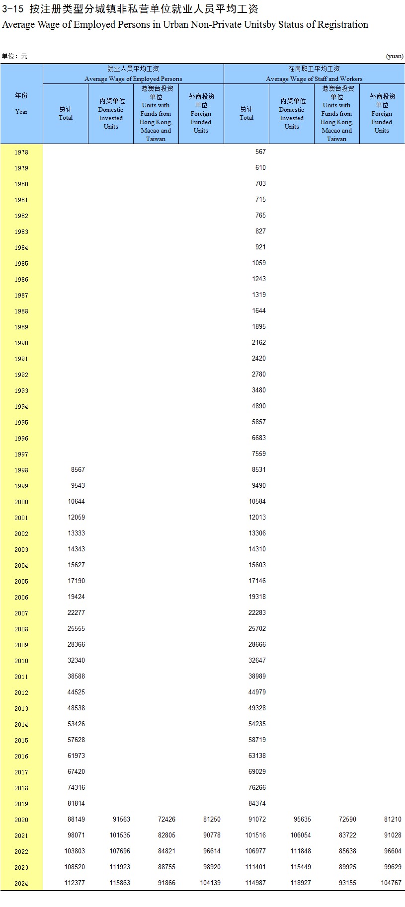 3-15 按注册类型分城镇非私营单位就业人员平均工资