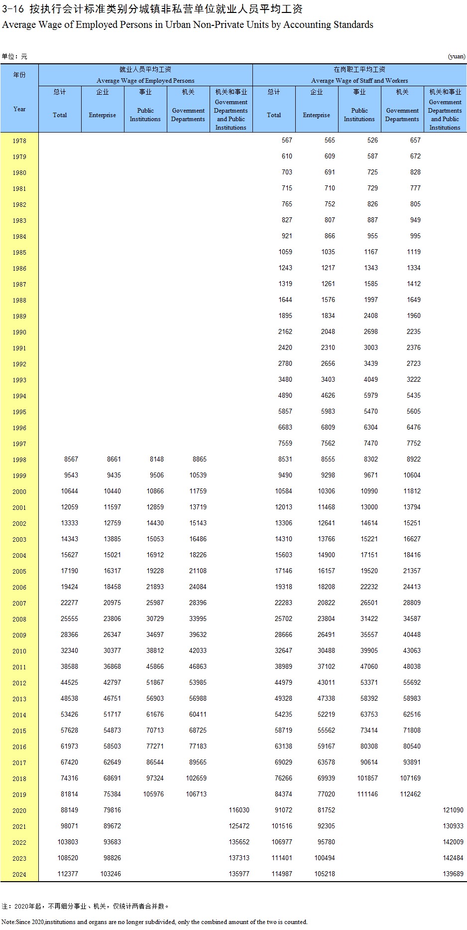 3-16 按执行会计标准类别分城镇非私营单位就业人员平均工资
