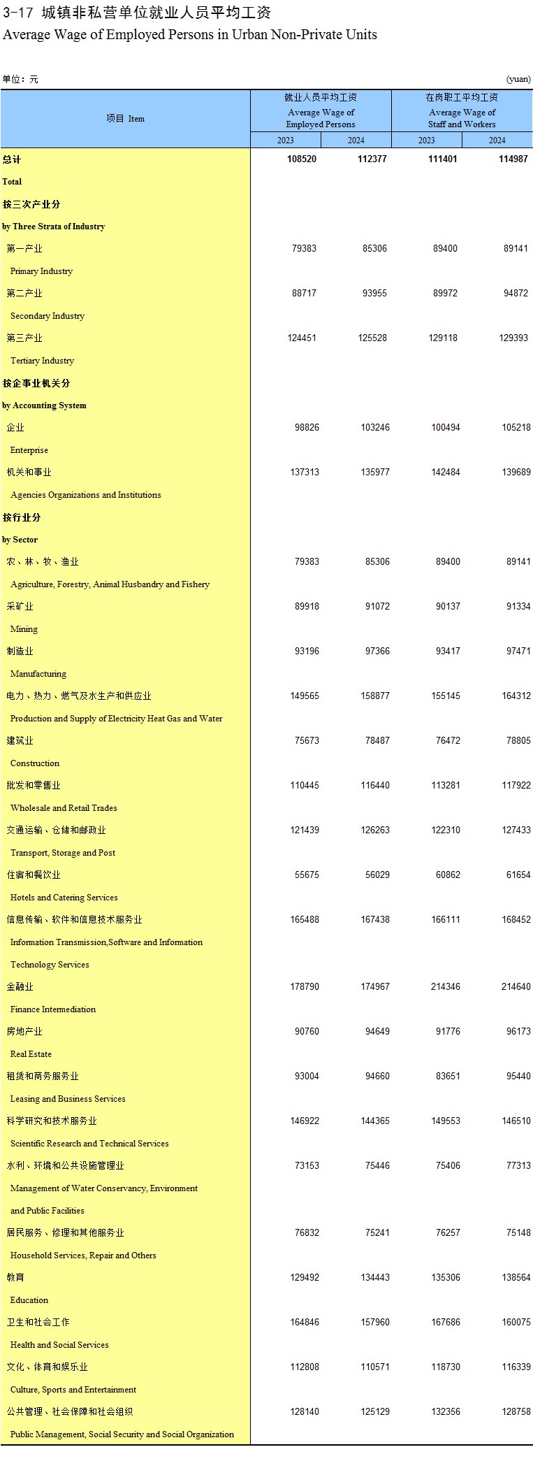 3-17 城镇非私营单位就业人员平均工资
