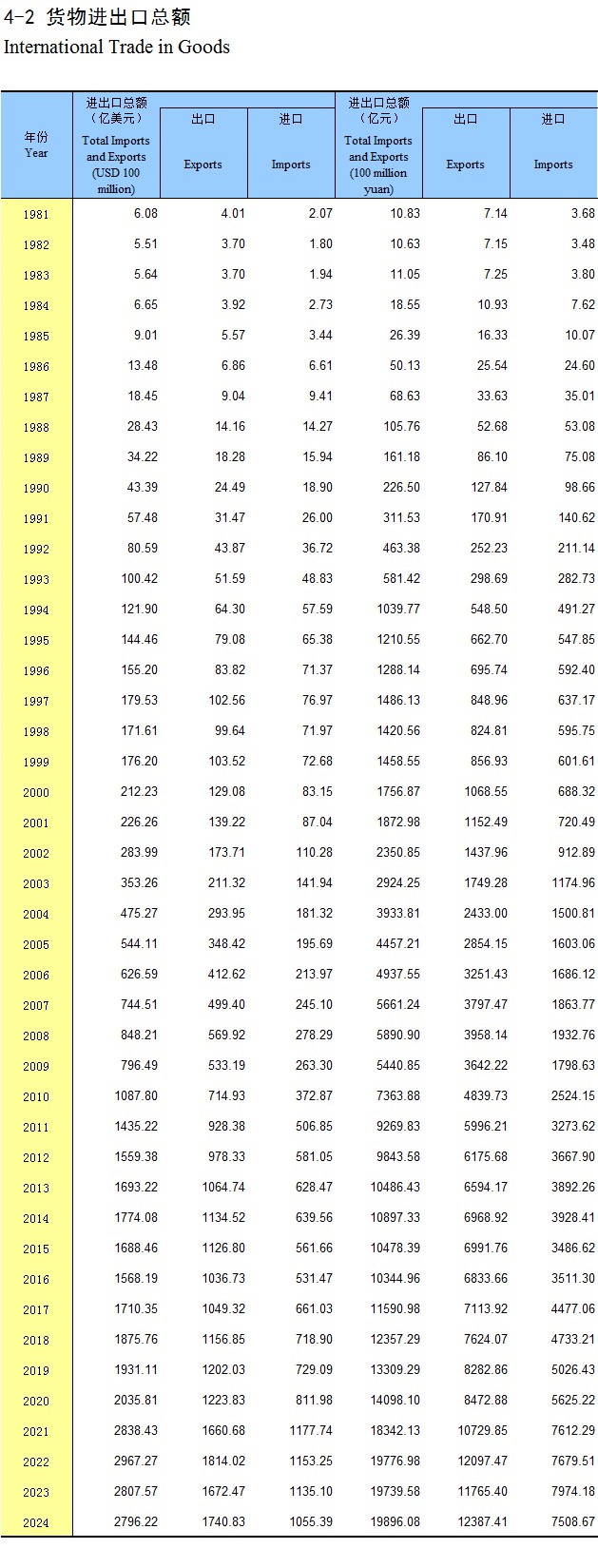 4-2 货物进出口总额
