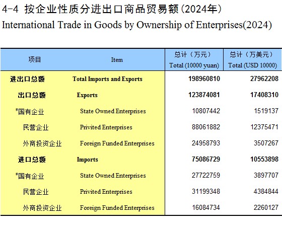 4-4 按企业性质分进出口商品贸易额(2024年)