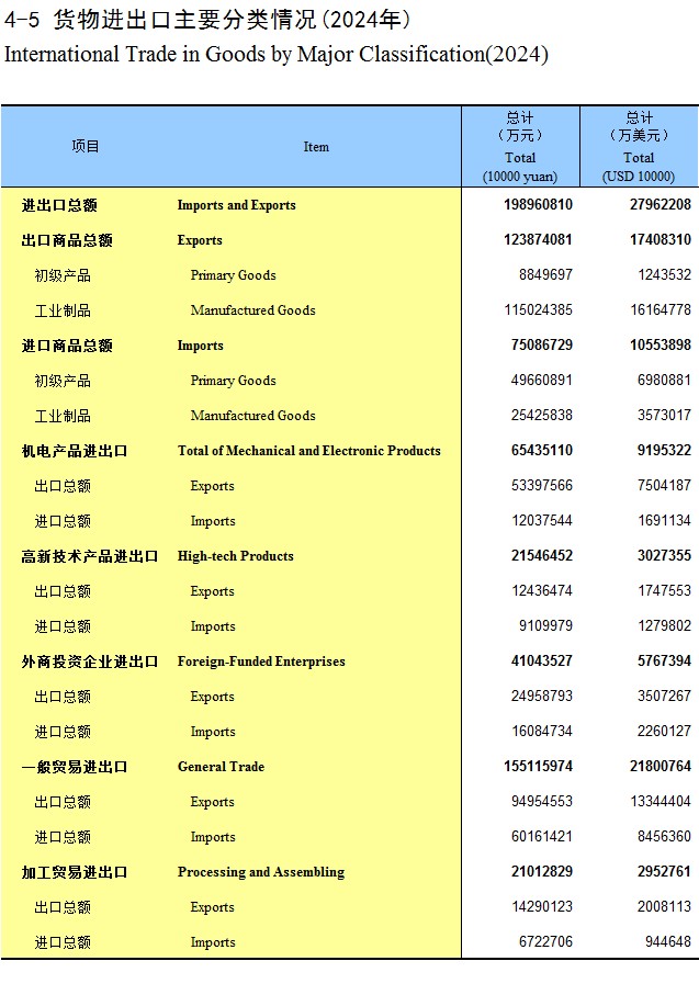 4-5 货物进出口主要分类情况(2024年)