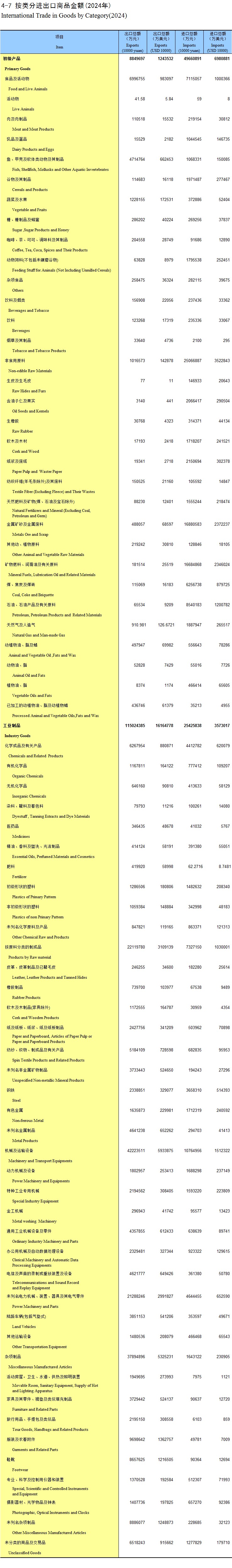 4-7 按类分进出口商品金额(2024年)
