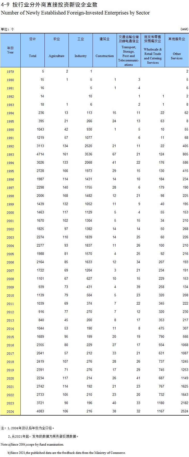 4-9 按行业分外商直接投资新设企业数