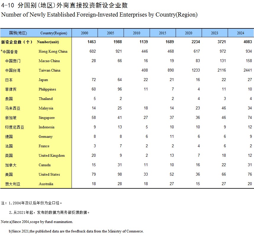 4-10 分国别(地区)外商直接投资新设企业数