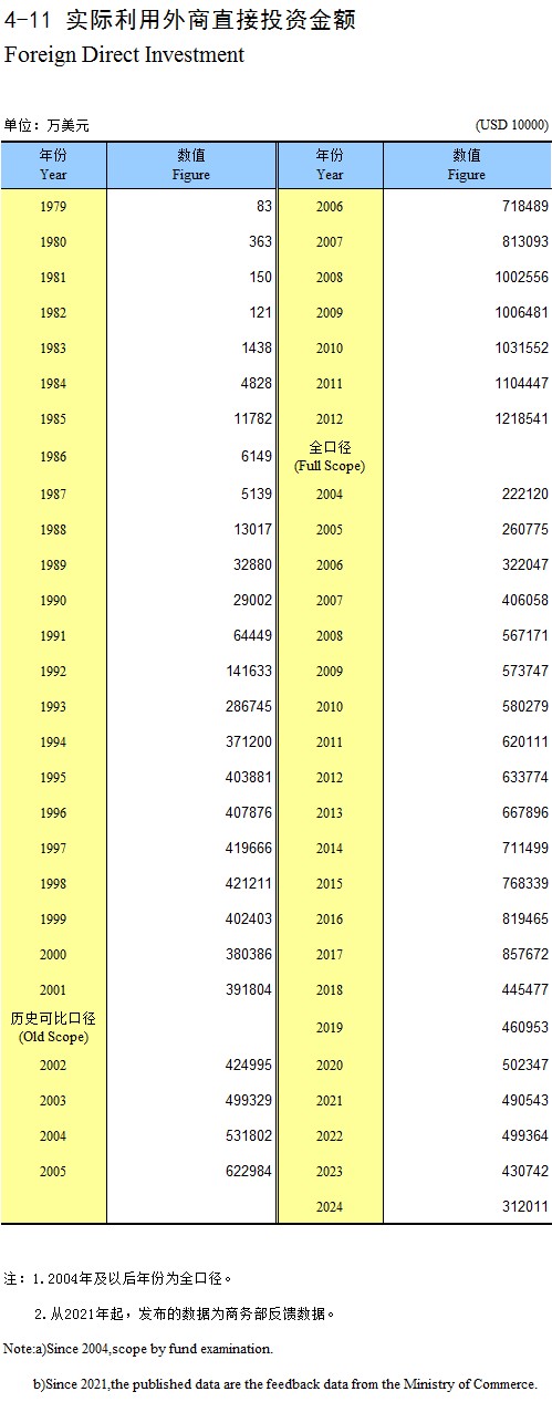 4-11 实际利用外商直接投资金额