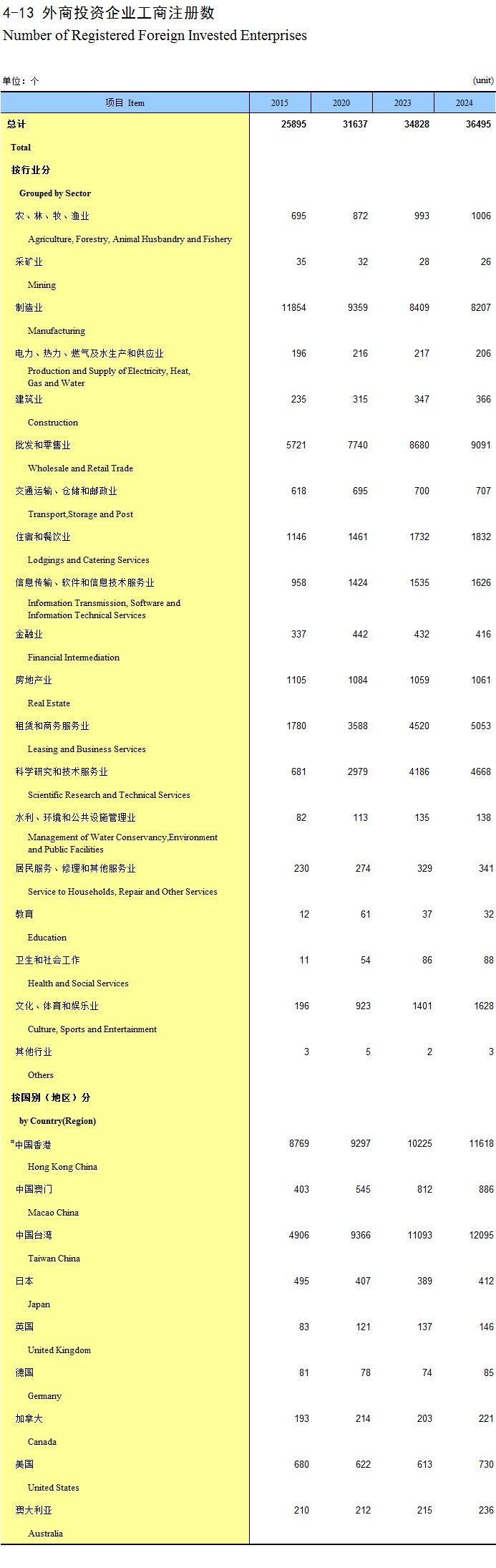 4-13 外商投资企业工商注册数