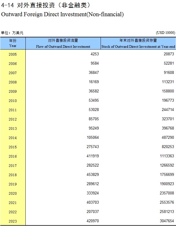 4-14 对外直接投资(非金融类)