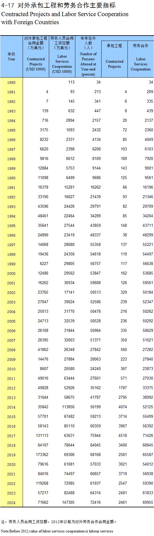 4-17 对外承包工程和劳务合作主要指标