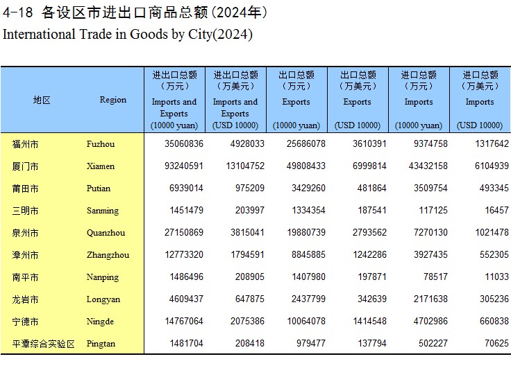 4-18 各设区市进出口商品总额(2024年)