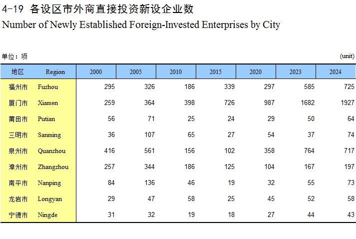 4-19 各设区市外商直接投资新设企业数