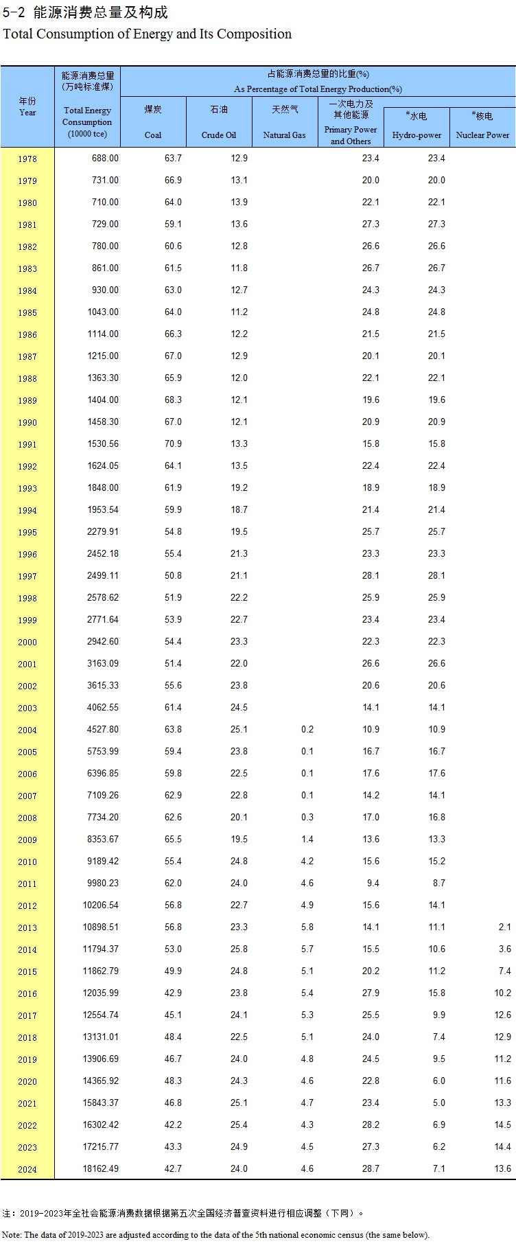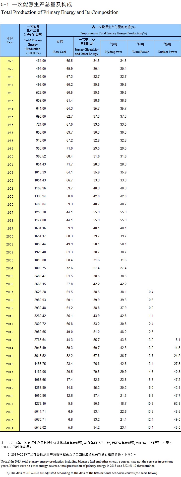 5-1 一次能源生产总量及构成