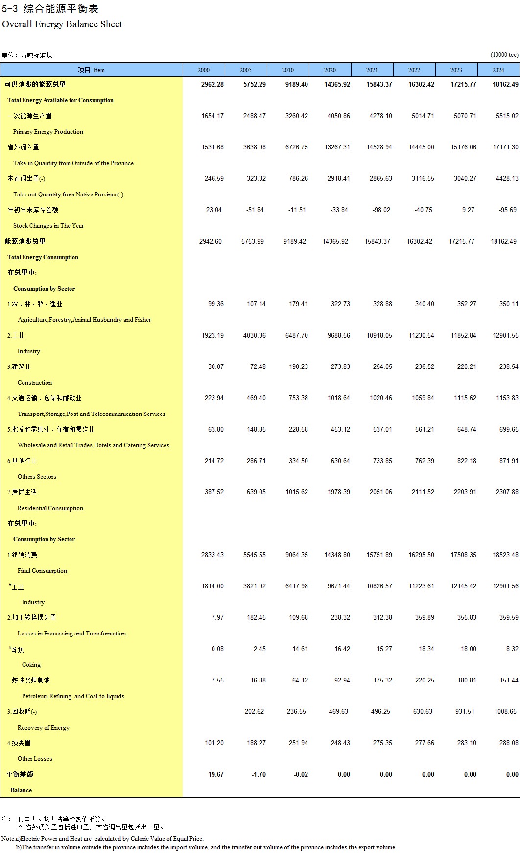 5-3 综合能源平衡表