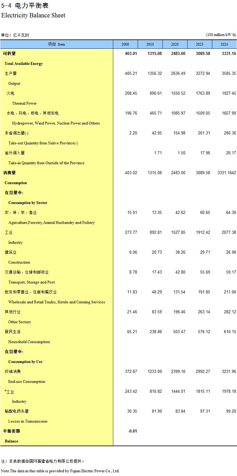 5-4 电力平衡表
