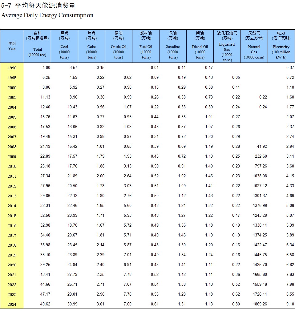 5-7 平均每天能源消费量