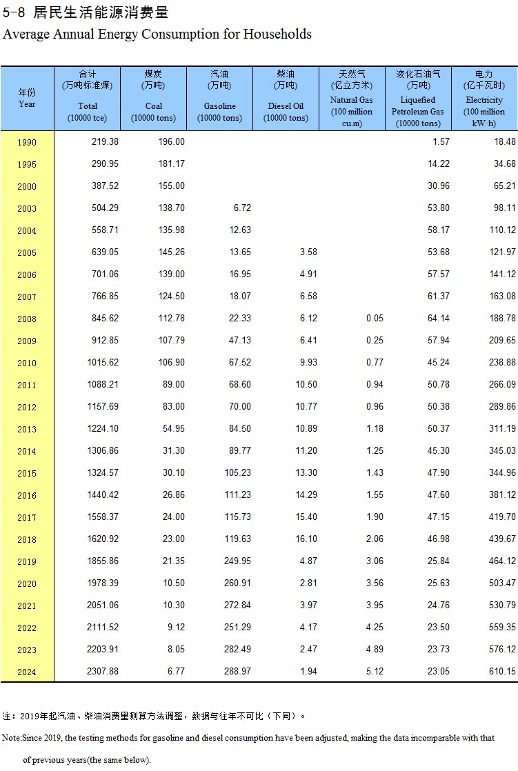 5-8 居民生活能源消费量