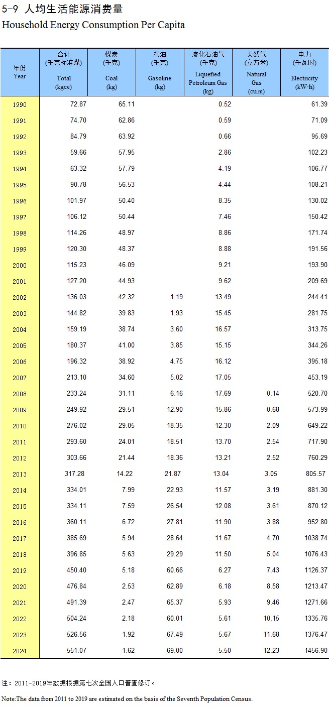 5-9 人均生活能源消费量