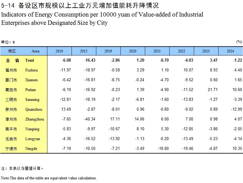 5-14 各设区市规模以上工业万元增加值能耗升降情况