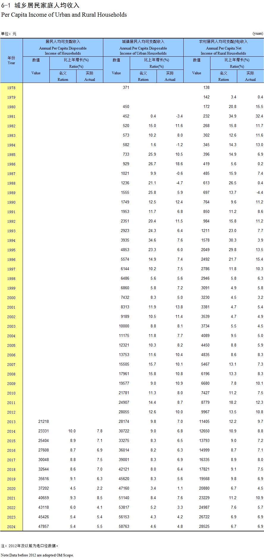 6-1 城乡居民家庭人均收入