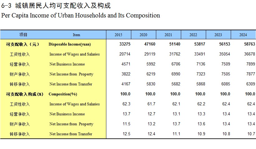 6-3 城镇居民人均可支配收入及构成