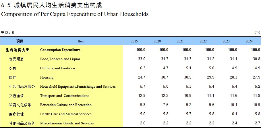 6-5 城镇居民人均生活消费支出构成