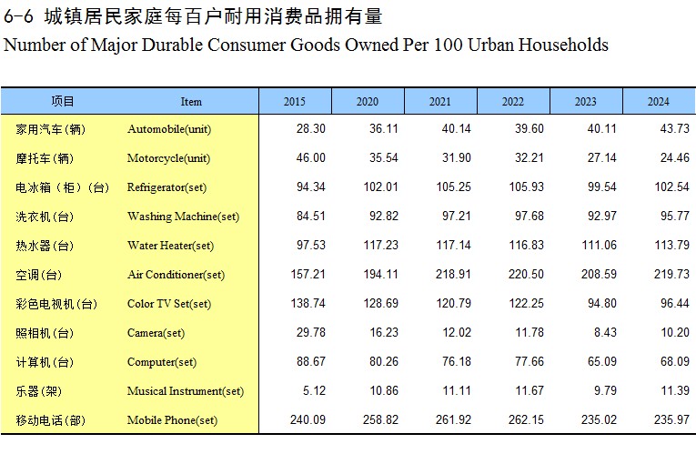 6-6 城镇居民家庭每百户耐用消费品拥有量