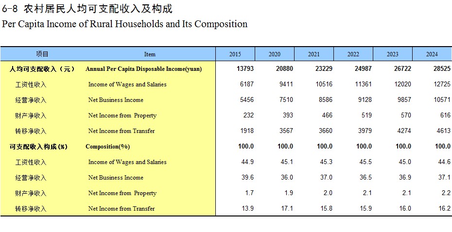 6-8 农村居民人均可支配收入及构成