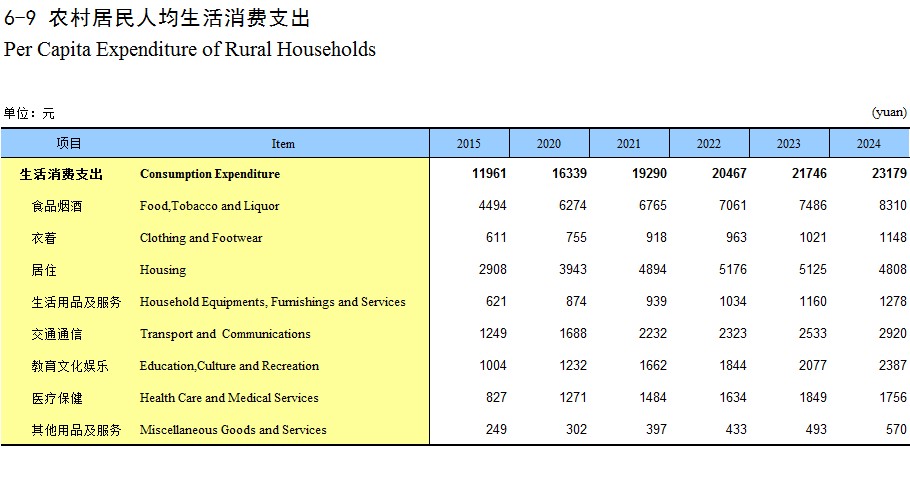 6-9 农村居民人均生活消费支出