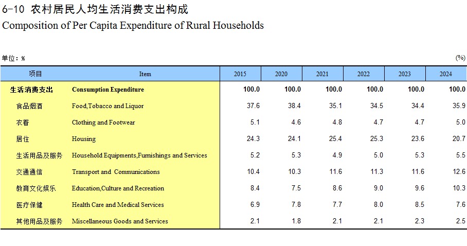 6-10 农村居民人均生活消费支出构成